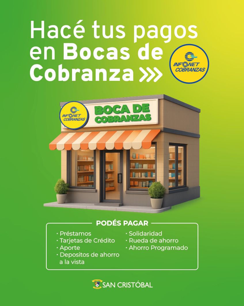 • Cajeros automáticos de la Red Infonet (Préstamos, Aporte y Solidaridad).